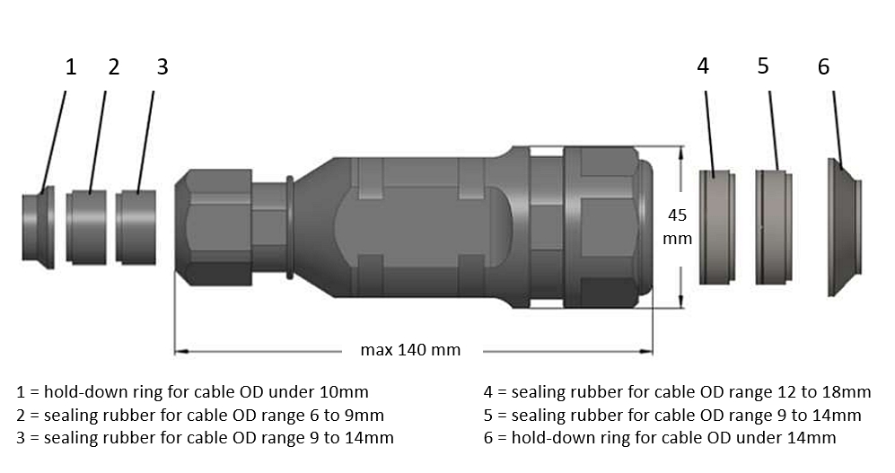 Cable Outer Diameter Input end: 9–14 mm and 14–18 mm | Output end: 6–9 mm and 9–14 mm