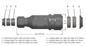 HELIAX® power adaptor, 2 Core DC Power Cable connection. Input Power Cable conductor size as 2.5mm2~25mm2 and Output Power Cable conductor size as 2.5mm2~16mm2. Shield contact size as 4~6mm2. Glands at both ends providing a IP67 weatherproof performance