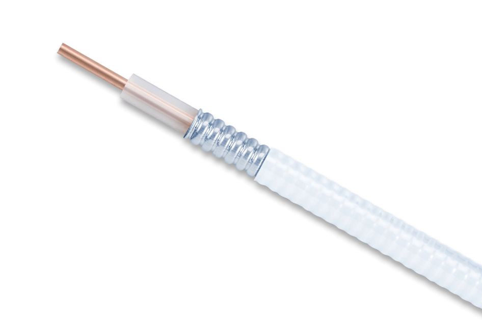 AL4RPV-50, HELIAX® Plenum Rated Air Dielectric Coaxial Cable, corrugated aluminum, 1/2 in, off white PVC jacket.