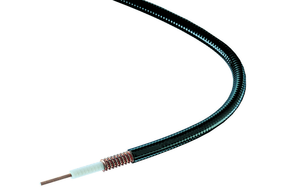 Heat Treated FSJ2RK-50, HELIAX® Superflexible Foam Coaxial Cable, corrugated copper, 3/8 in, black non-halogenated, fire retardant polyolefin jacket