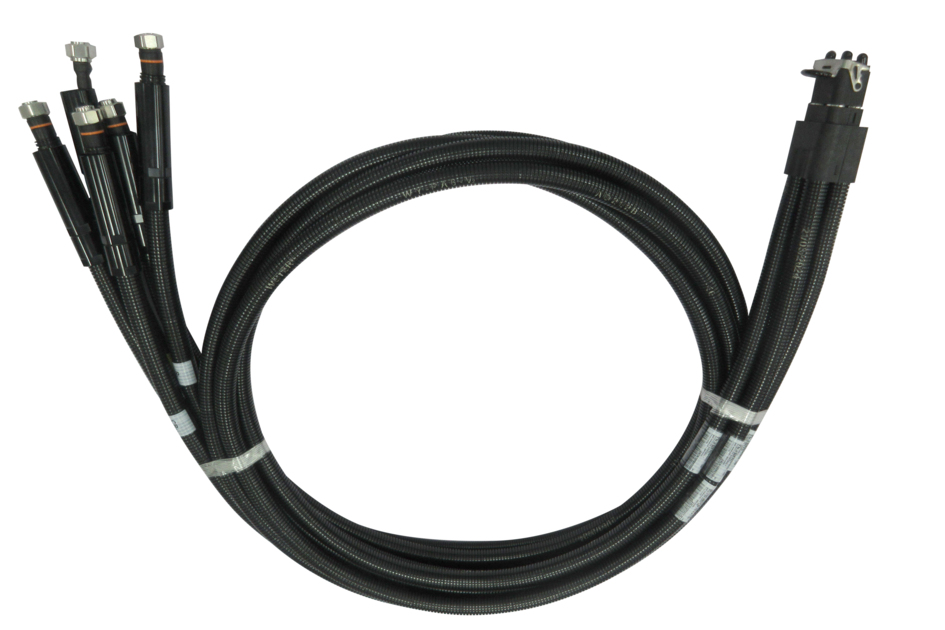 HELIAX® M-LOC Multiport cluster 5 ports SureFlex® cable assembly with interface type M-LOC latching male to 4.3-10 male,size 3/8", length 8 meters, covered by conduit shield