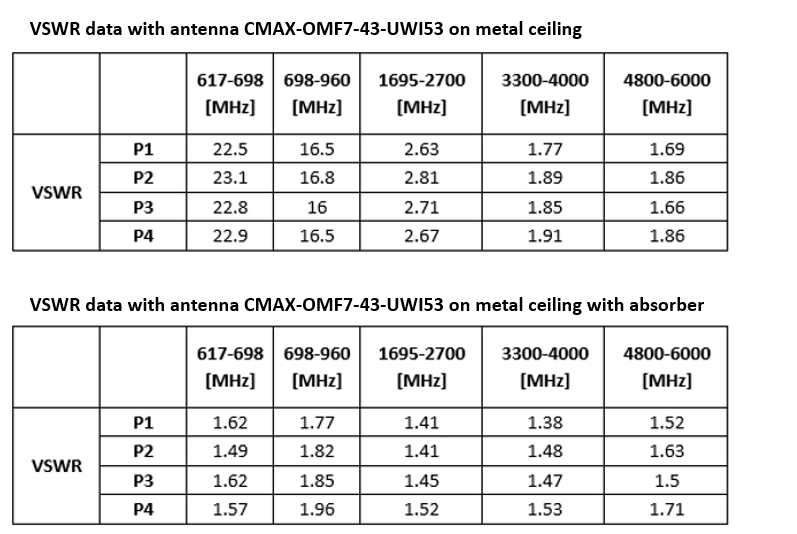 Omni Absorber ground plane to improve VSWR on metal ceilings (This product was designed to match the CMAX-OMF7-43-UWI53 antenna to metal ceiling)