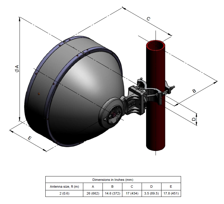 0.6 m | 2 ft Sentinel® High Performance Antenna, single-polarized, 21.200–23.600 GHz