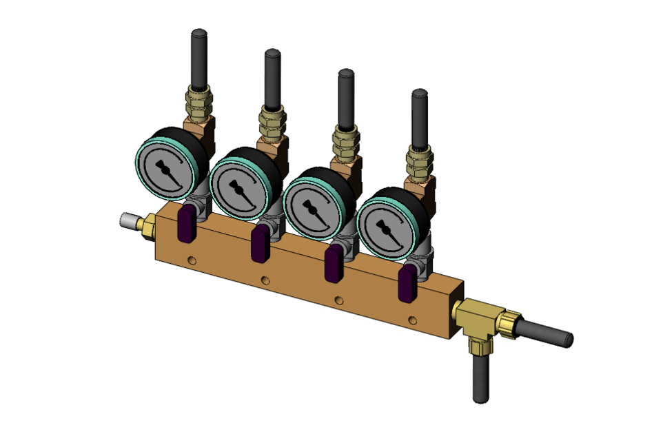 4-port Distribution Manifold, wall mountable, 0–15.0 psig, 25 ft of tubing per port