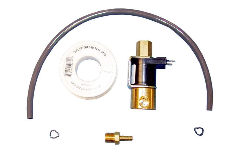 | Included | 1/4 in polyethylene tubing | Brass barb fitting | PTFE tape | Solenoid valve | Squeeze hose clamp |