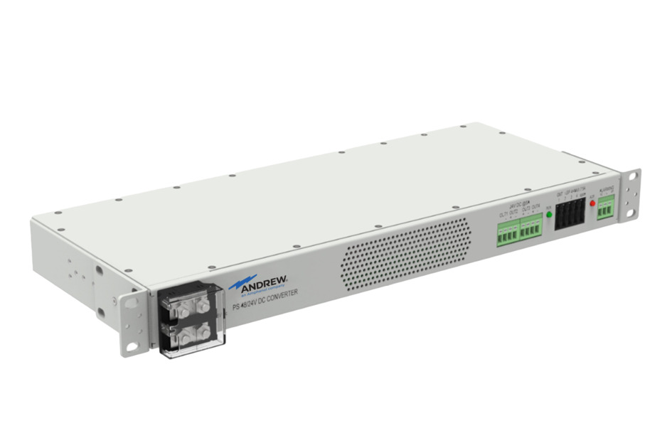 PowerShift Power Supply, 48/24V DC 20A Converter panel, 19/23 in, 1 RU high, with four 24V DC GMT fuse outputs.