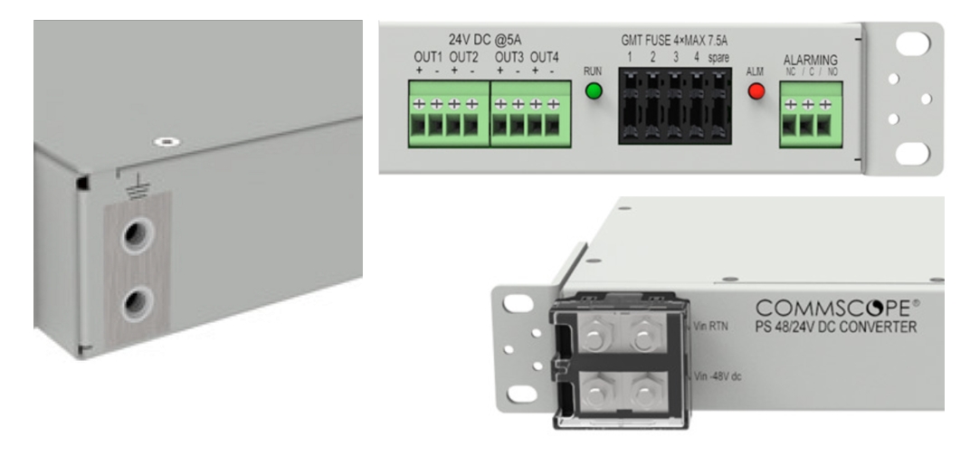 - (1) -48 VDC Input and (4) +24VDC GMT Fuse Outputs