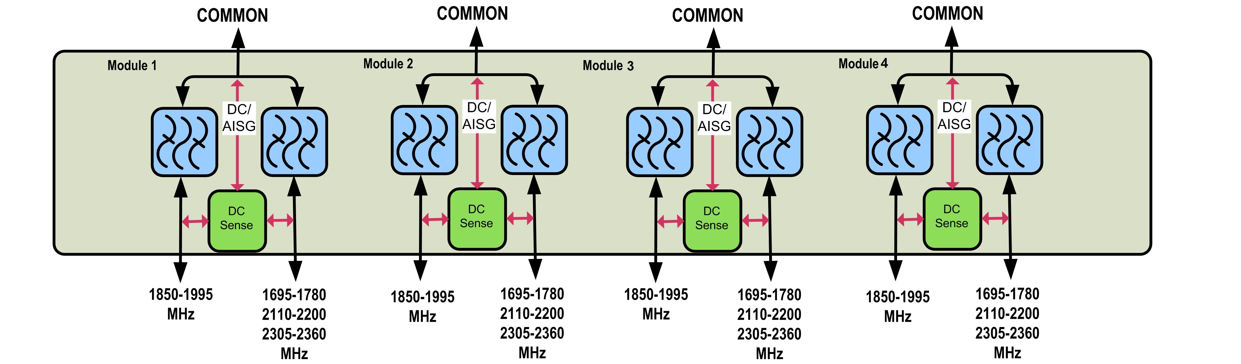 Quad Diplexer PCS/AWS+WCS, dc Sense, 4.3-10