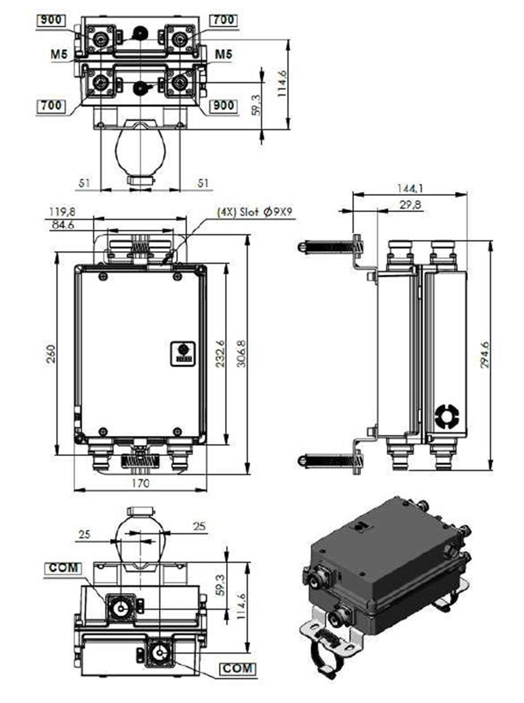 Twin Diplexer, 700/900 MHz, RJ40, dc block on all ports with hybrid connectors 4.3-10 input and 7/16 output