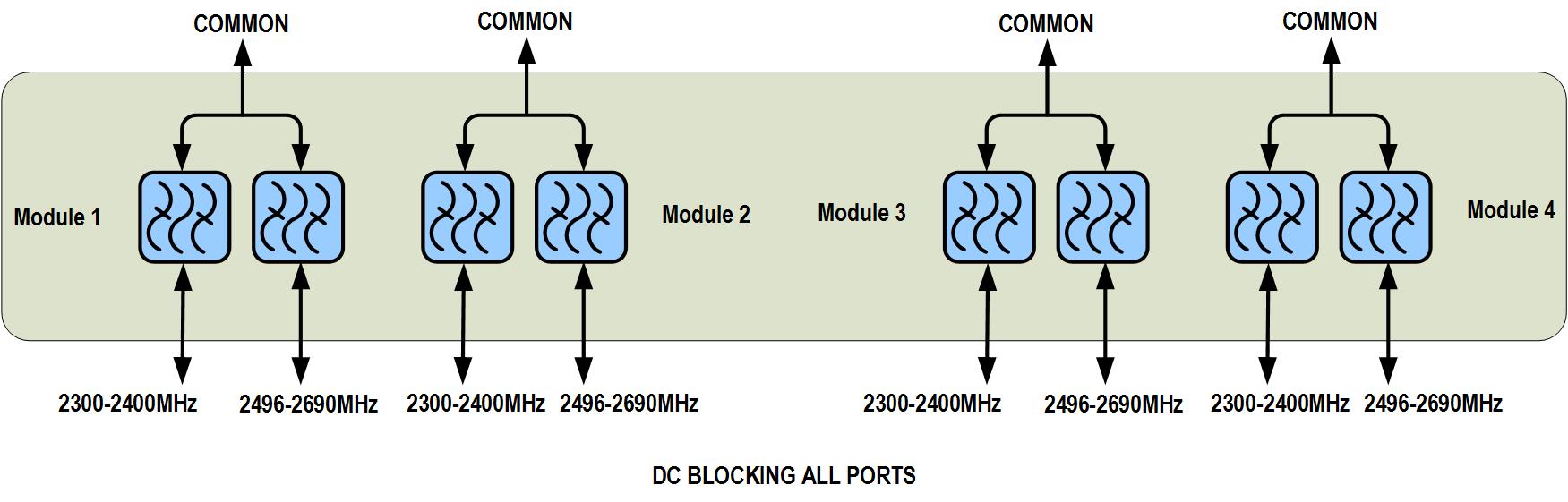 Quad Diplexer 2300-2400/2496-2690 MHz, 4.3-10 connectors