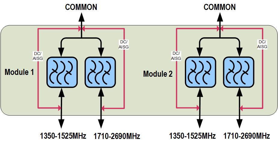 dc/AISG Pass-through, combiner Branch 1 | Branch 2