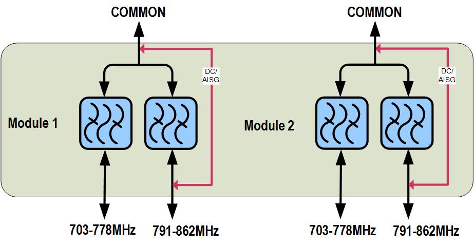 • dc/AISG pass-through on high frequency ports
