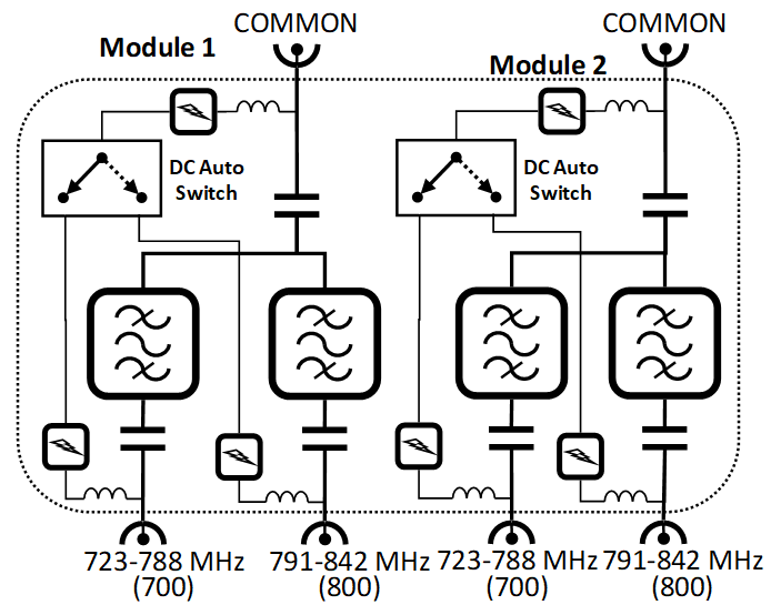 Twin Diplexer, 700/800 MHz, dc smart by pass on all ports
