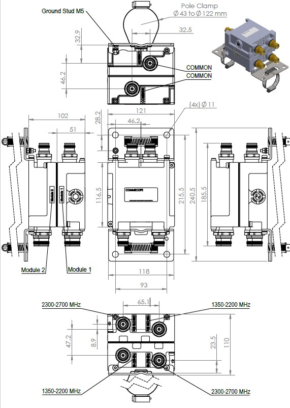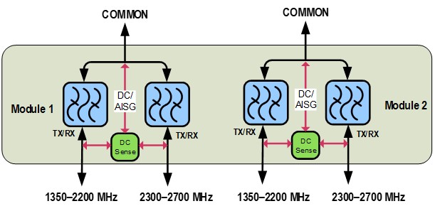 | dc/AISG Pass-through Path | Auto sensing circuitry detects dc/AISG signal presence and selects path |