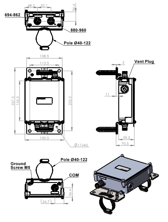 - Suitable for space limited applications like Metro Cell, Lamp Pole, Concealment Solution and Macro Site