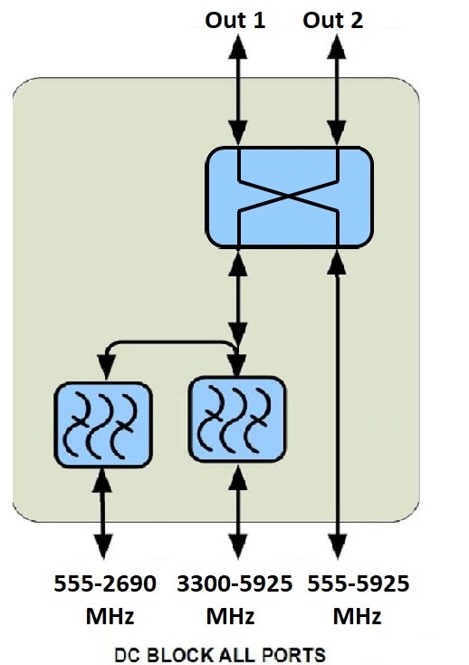 | Isolation, minimum, dB | 20 @ 555–2690 50 @ 3300–5925 | 20 @ 3300–5925 50 @ 555–2690 | 20 @ 3300–5925 20 @ 555–2690 |