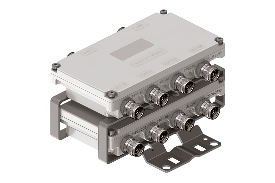 Ultra Compact Quad Diplexer 1695-2200/2300-2690 MHz, 4.3-10 connectors