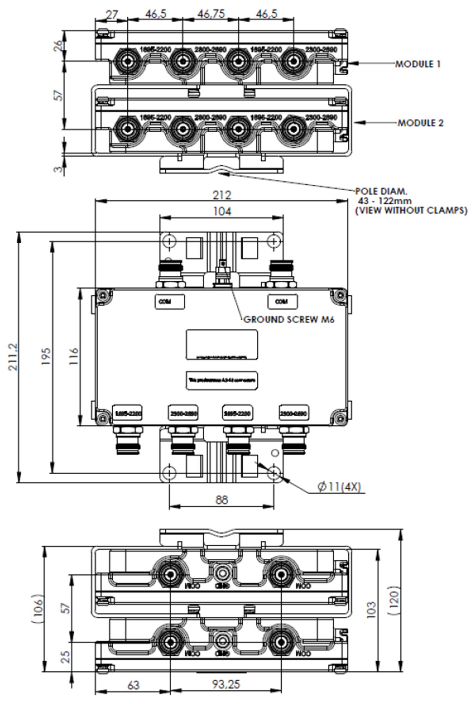 | dc/AISG Pass-through, demultiplexer | dc/AISG blocking on all ports |