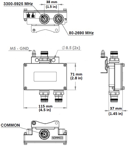 Ultra Compact Diplexer 80-2690MHz/3300-5925MHz, 4.3-10