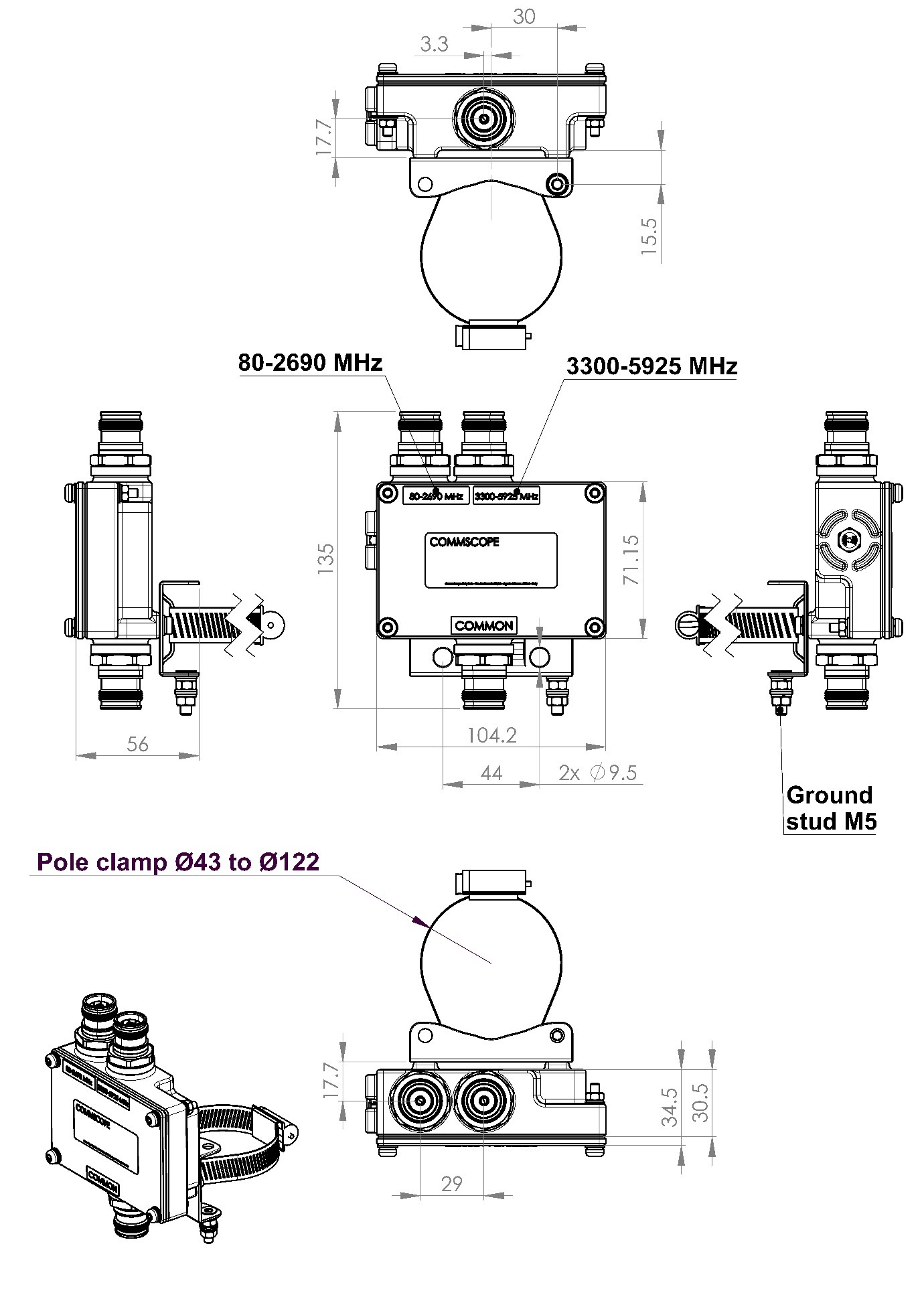 Ultra Compact Single Diplexer 80-2690/3300-5925, DC Low, 4.3-10 connectors