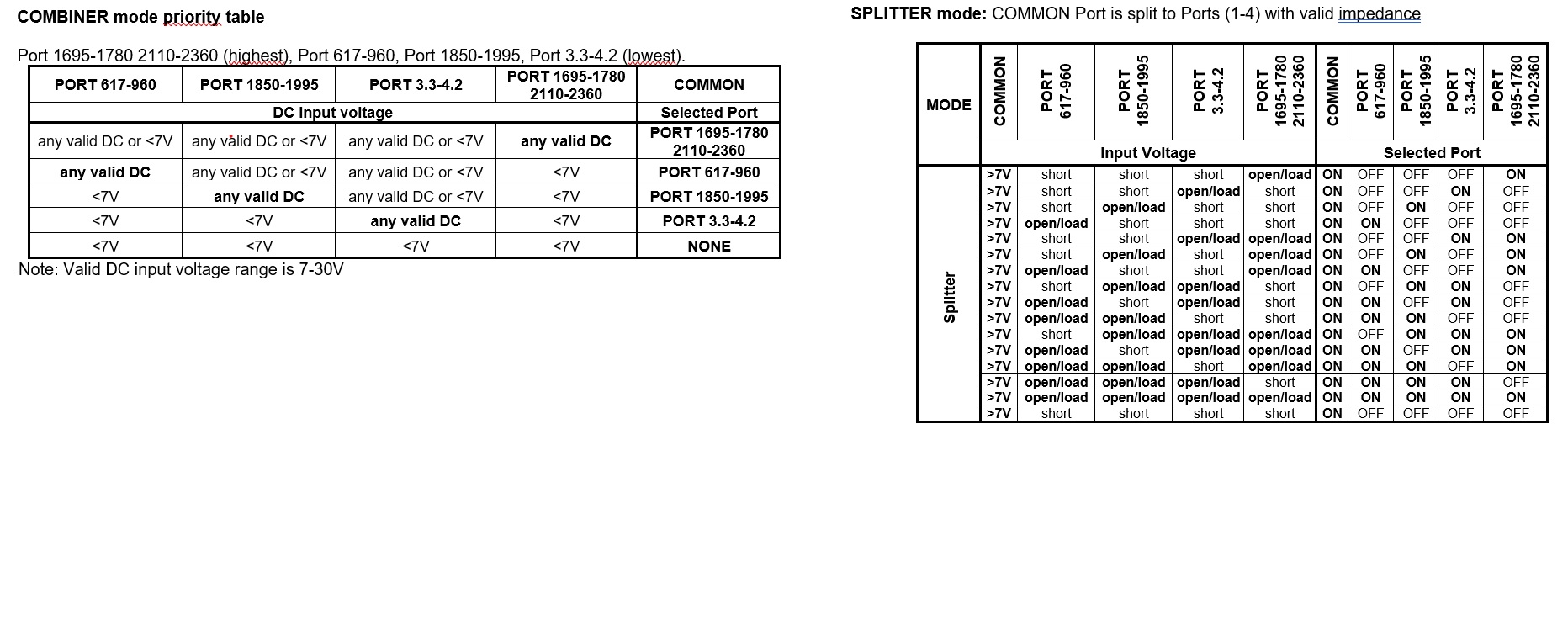 Port Designation 617-960 PCS AWS-WCS CBRS, C-Band