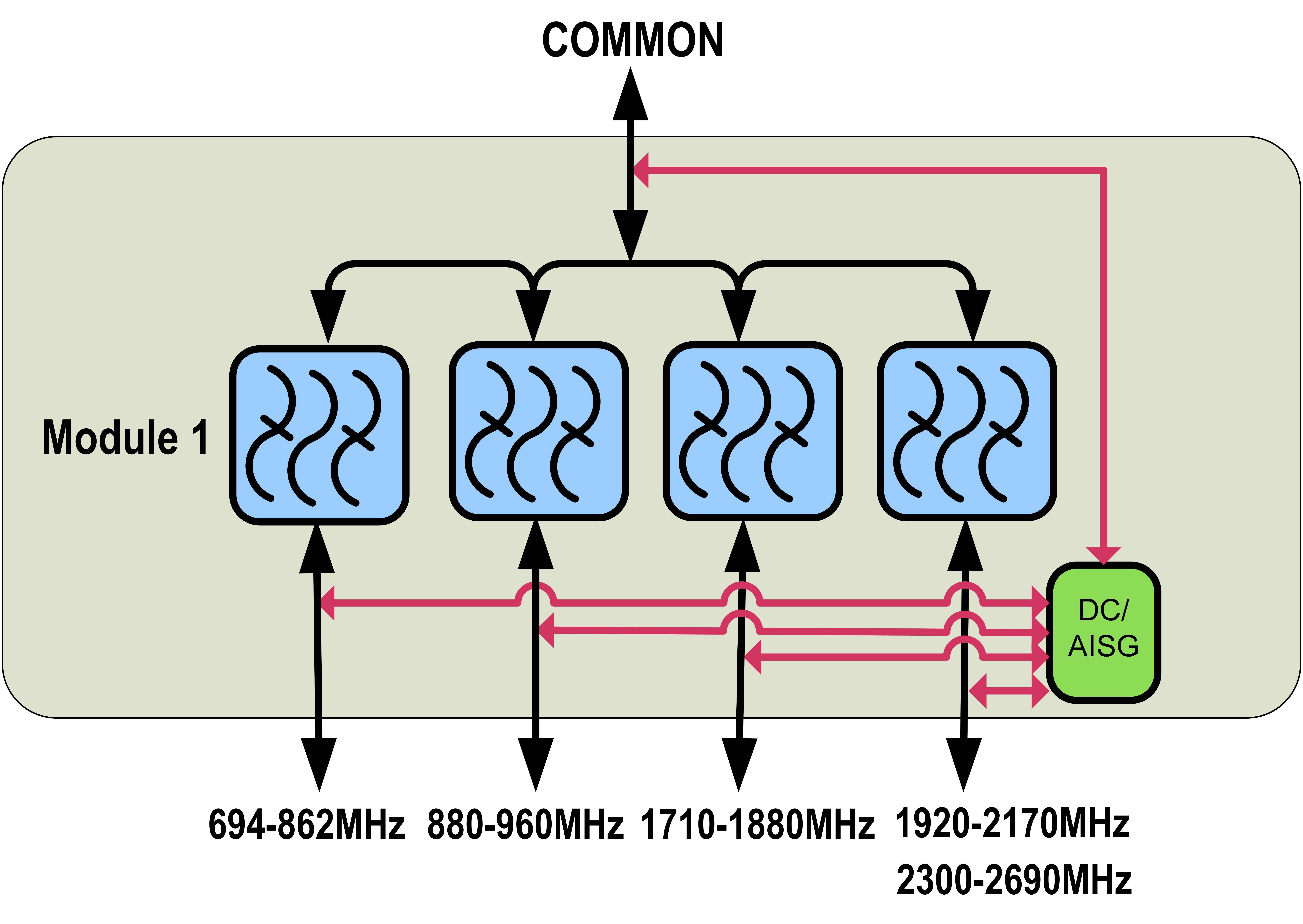 | dc/AISG Pass-through, combiner | dc Sensing |