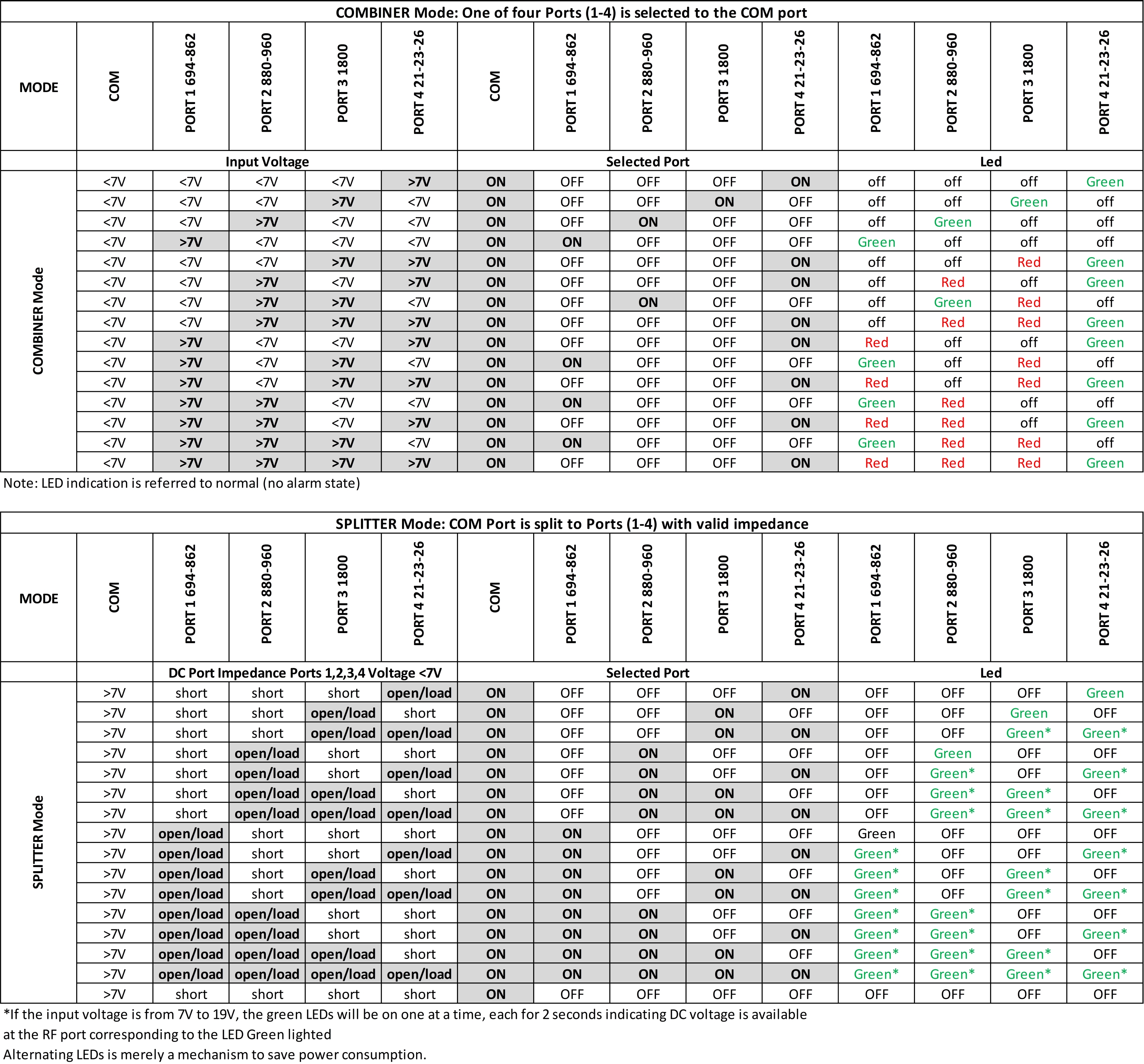 | dc/AISG Pass-through Path | See logic table |