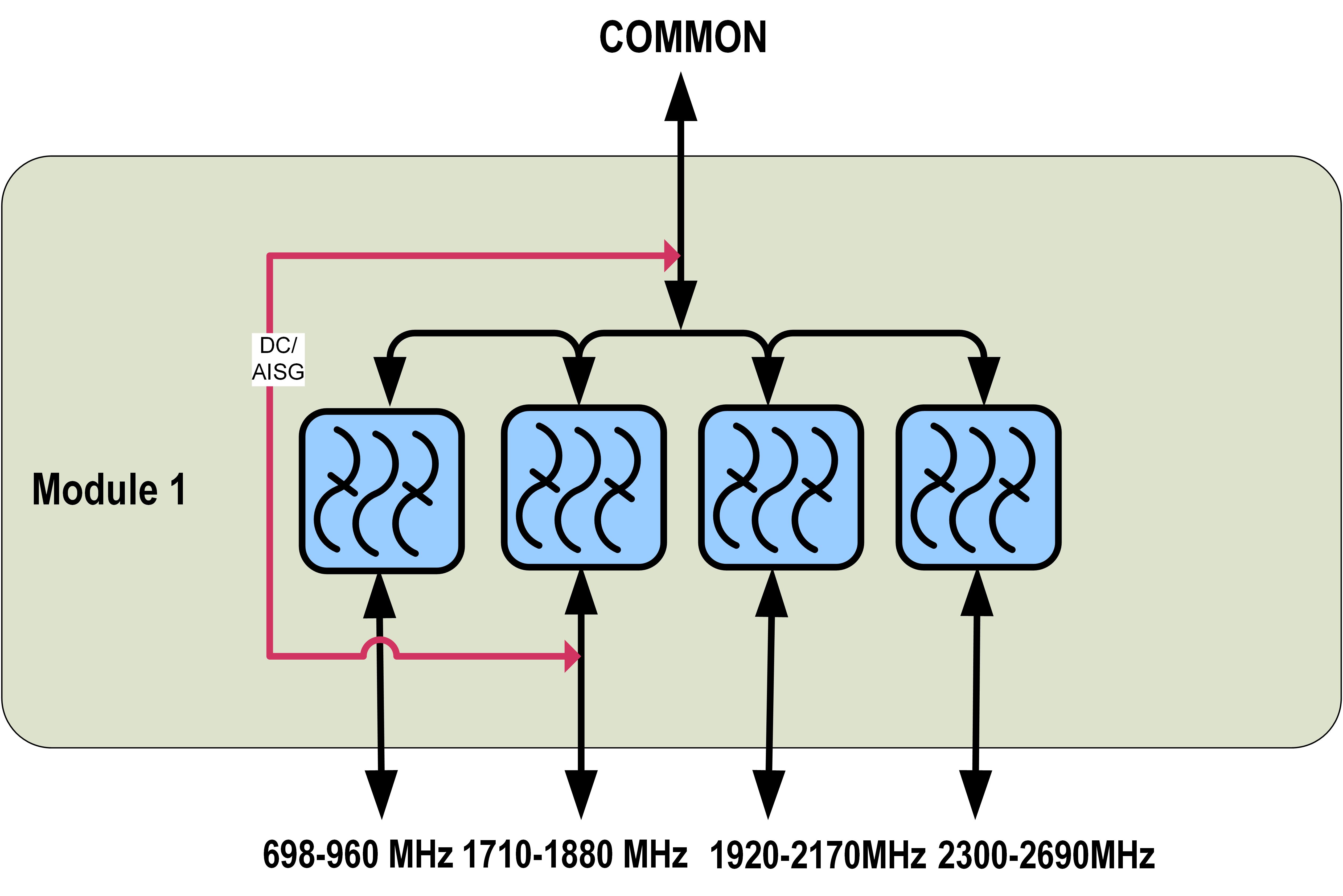 | Port Designation | PORT 1 698-960 | PORT 2 1710-1880 | PORT 3 1920-2170 | PORT 4 2300-2690 |