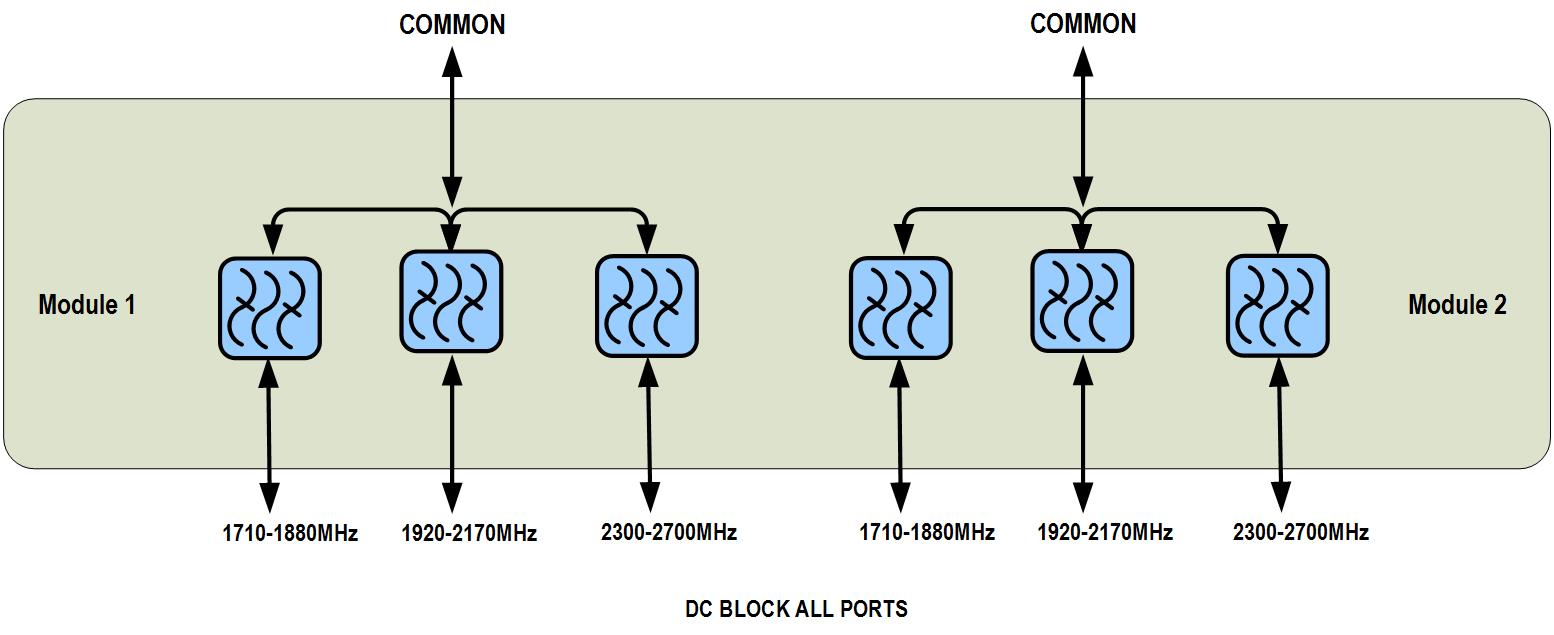 dc/AISG Pass-through, demultiplexer dc/AISG blocking on all ports