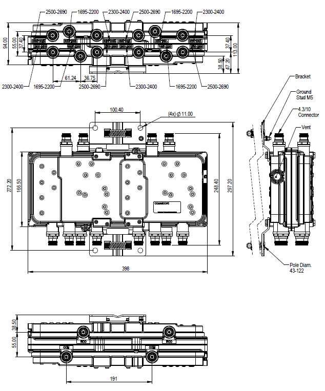 - dc/AISG pass-through on all frequency ports