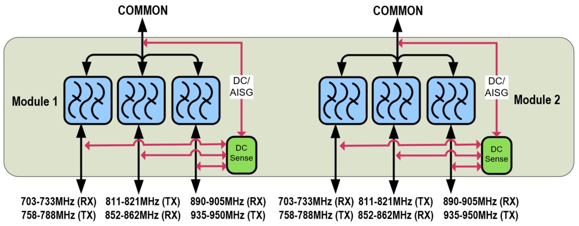 2X Triplexer 703-788/811-862/890-950, DC Smart Bypass, with 4.3-10 connectors