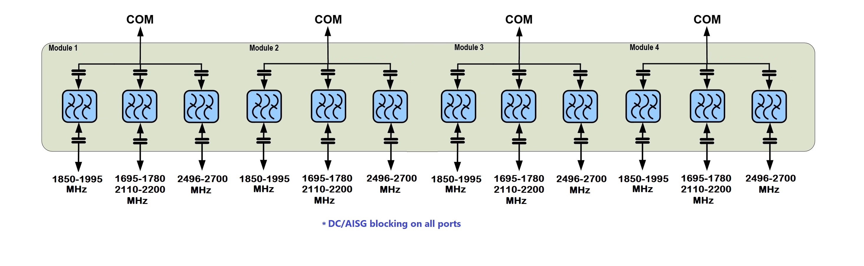 | License Band | PCS 1900, Band Pass | AWS 1700, Band Pass AWS 2000, Band Pass | IMT 2600, Band Pass TDD 2600, Band Pass |