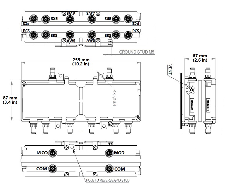 Ultra-Compact Quad Triplexer PCS/AWS/2496-2700MHz, NEX10 connectors