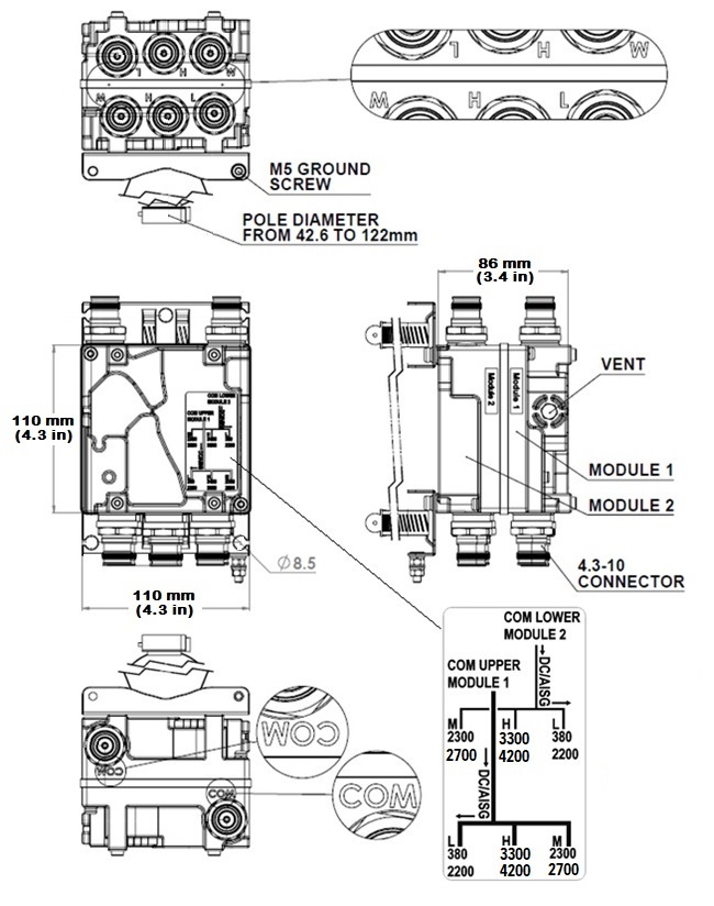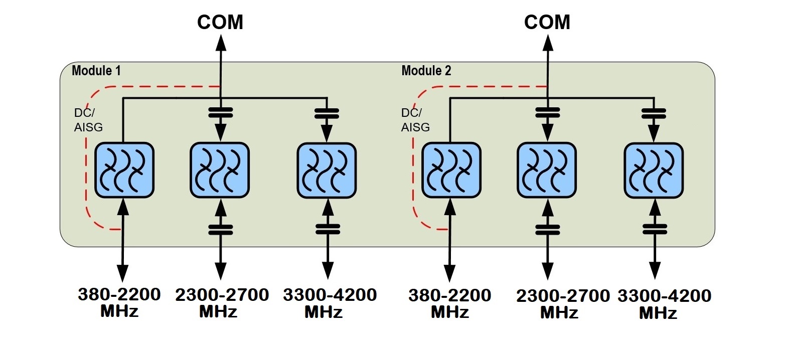 - dc/AISG pass-through on low frequency ports