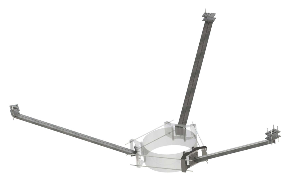 Kicker Support Arms, 3” x 3” x 96” Angle with Connecting Brackets and Hardware for 3” to 6” square or 3-1/2” to 4-1/2” OD Stand-offs, 3 sectors. Attaches to MUK-PLK7 collar - not included.