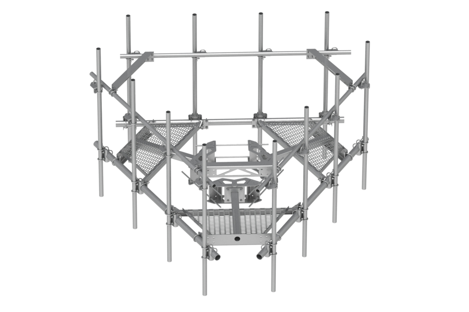Low-Profile Co-location Platform Kit, 8 ft face, 12 in to 38 in OD, (9) 2-3/8" OD x 72" Pipes, with Support Rail Kit
