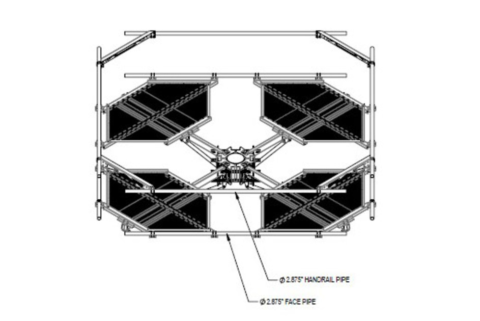 PIM Optimized Adjustable 4-Sector Monopole Platform with 13ft Face - 2-7/8in OD Face Pipes & Top Rail - No Antenna Pipes Included