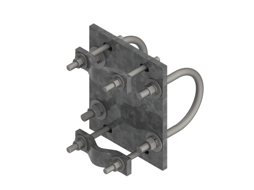 Single Crossover Plate kit for MT-197 Stand-off: Mounts one 2-3/8"-3-1/2" Pipe to 4-1/2" Round or 4" Square Members
