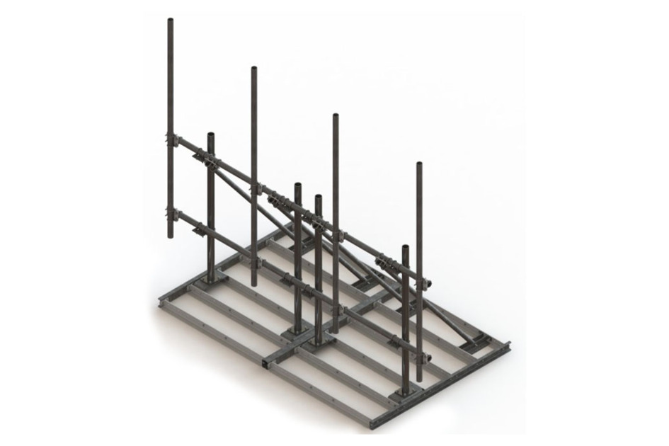 High Capacity DUAL Non-Penetrating Roof Frame, 14 ft face, three 2-7/8 in OD x 126 in pipes
