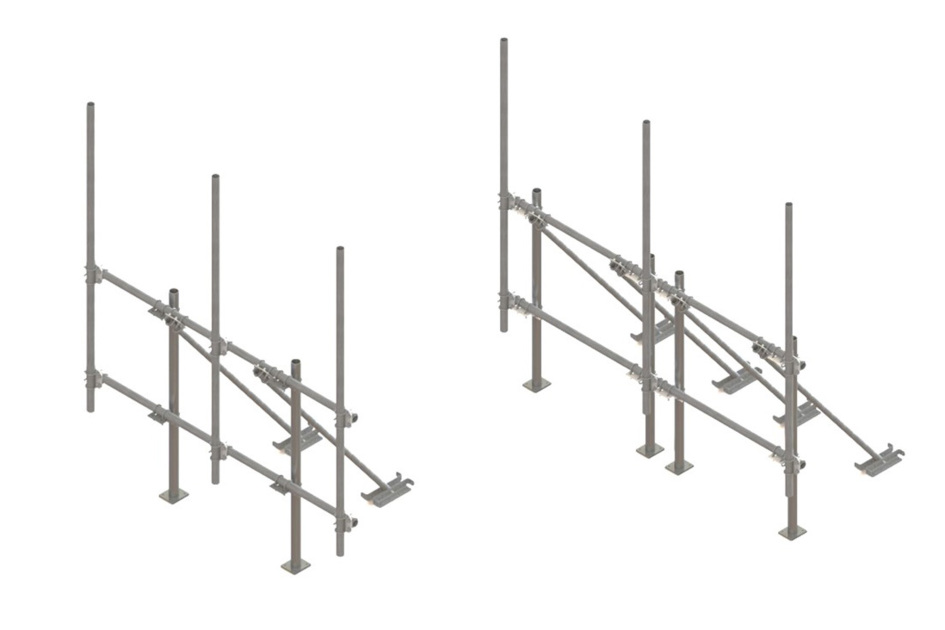 The RT-Series rooftop mounts all feature heavy duty 2 7/8” OD face pipes and up to 5 2-7/8” (face width dependent). The frame features built-in mechanical adjustments for roof pitch with either single or dual frame versions to maximize load bearing capabilities.