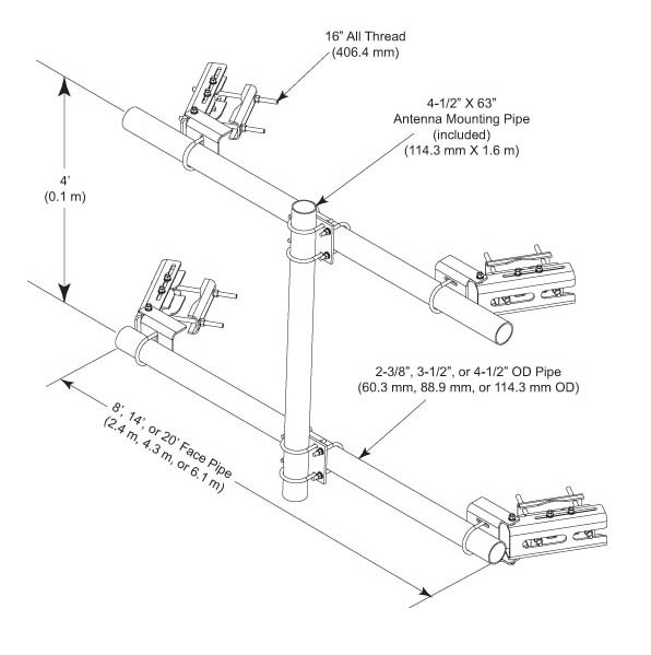Tower Face Mount with dual 8 ft x 4-1/2 in OD face supports; includes pipe