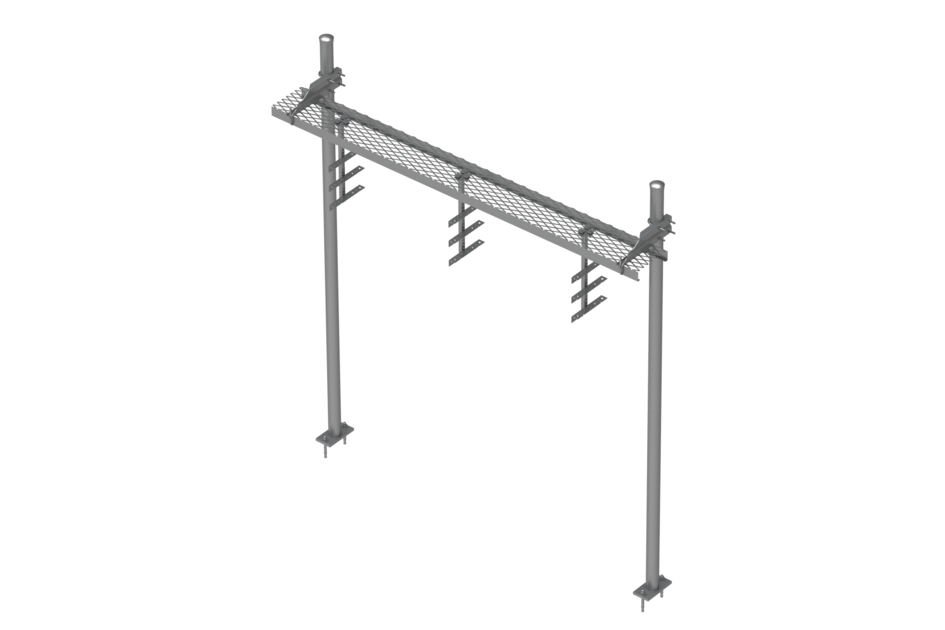 Heavy Duty Safety Grated Waveguide Bridge Kit, 12 in x 10 ft, with two 10 ft 6 in base shoe posts